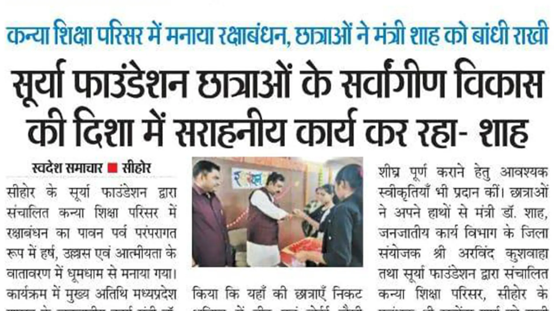 It was a pleasure to attend the Annual Day of Kanya Shiksha Parisar, Sehore. Girls’ education is the foundation of nation-building and social change, empowering women to contribute to family, society, and the country. Surya Foundation’s efforts for the holistic development of girls are highly commendable, and today’s program was truly excellent. Heartfelt congratulations to all students and teachers.